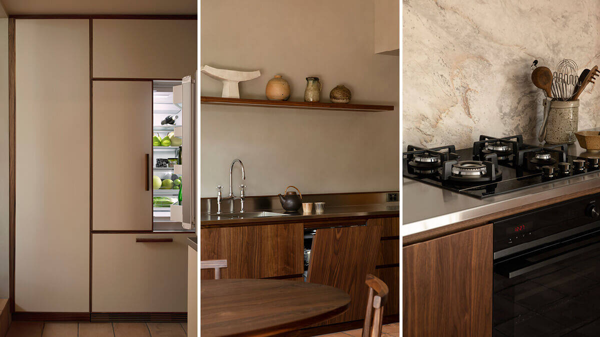 厨房坐落于这一整体式结构中,也成为了整个空间的一部分。这种厨房设计方法也意味着,电器选择这个一向至关重要的决定变得更加重要。建筑师 Jack McKinney 解释说:“虽然我们想配备优质电器,但我们并不想让这些电器只成为厨房的众多功能。”“整个设计旨在提供一体化体验,而非一系列功能。电器之间的整合和电器的简约设计使我们能够在这一空间中保持一种沉思的氛围。”